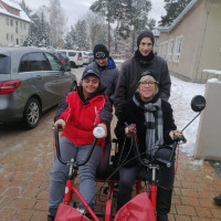 Heute hat Moritz ein Tandemfahrrad in die Schule gebracht. Dies ist ein Weihnachtsgeschenk von Moritz und seiner Familie. Wir haben uns alle sehr gefreut. Das Fahrrad hat gleich eine Probefahrt mit Max, Ali und vielen mehr gedreht. Es ist ein ganz wunderbares Geschenk. Vielen Dank!