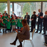 Am 15. März 2023 wurde endlich unser neuer Schulanbau eingeweiht. Wir haben einen wirklichen Festakt vollzogen. Der Landrat war da, die Zeitung, unser Förderverein und noch weitere Gäste. Alle Schüler*innen haben unser „Wiesenweglied“ mit Gebärden vorgetragen und eine Rede vom Landrat und vom Schulleiter gehört. Wir haben einen Baum als Einweihungsgeschenk erhalten, der gleich einen Schluck zu trinken bekam. Nun können wir zwei neue Klassenräume mit Smartboards, einen großen Essenraum und eine neue Schulküche nutzen. Coole Schule!