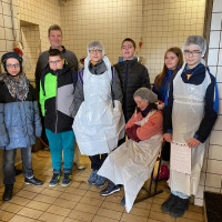 Im Februar 2023 besuchte die Klasse 6/7b die Fleischerei Kantor in Spremberg. Im Vorfeld beschäftigten sich die Schüler fächerübergreifend in Mathematik, Sachkunde und Deutsch mit dem Berufsfeld Fleischer. Vorbereitete Fragen beantwortete Herr Kantor anschaulich und verständlich. Er zeigte die Herstellung von Wurst, verschiedene Maschinen und Gewürze. Mit einem selbst bedruckten Geschirrtuch bedankten sich die Schüler für diese lehrreiche Zeit in der Fleischerei.